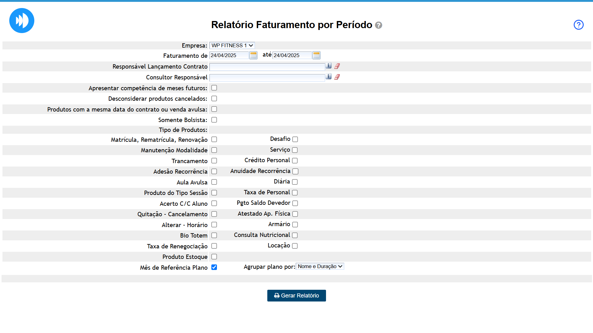 - Produto do Tipo Sessão: marque caso deseje considerar a data de faturamento por produtos do tipo Sessão;