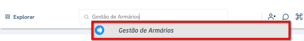 1. Na lupa de busca do sistema pesquise por “Gestão de Armários“;