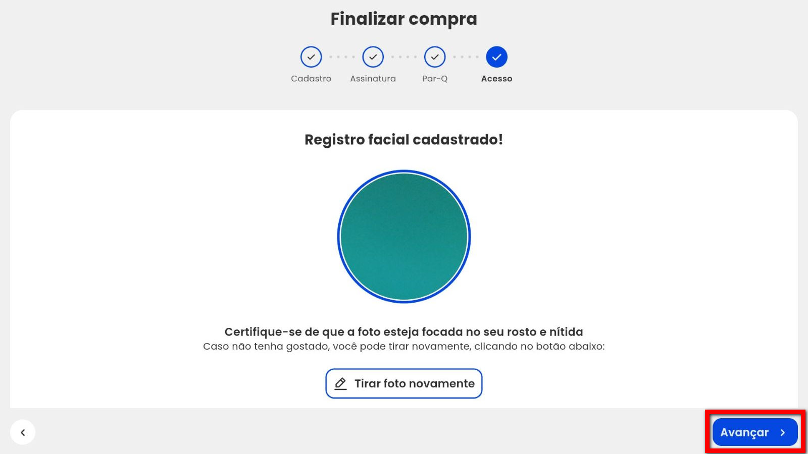 3.2.6. Na tela Acesso realize a captura da foto do cliente e clique em “Avançar“.