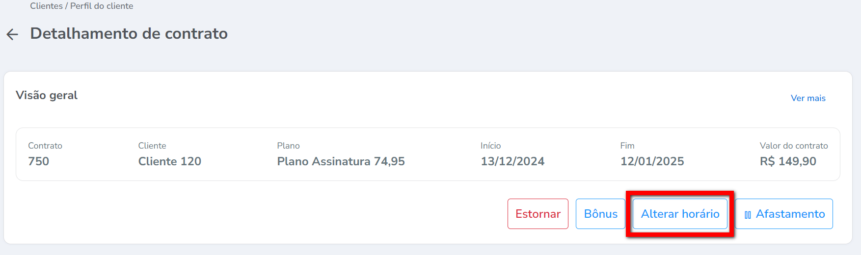 1. Na tela de “Detalhamento de contrato“, clique em “Alterar horário“;