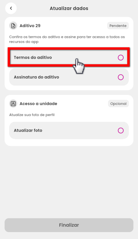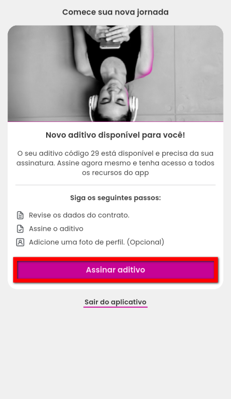 Assinando o contrato/aditivo pelo perfil do aluno no aplicativo