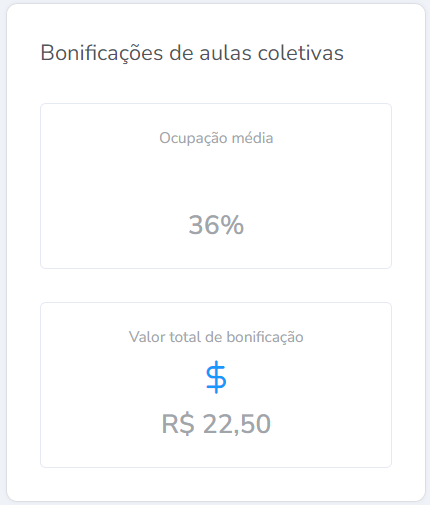 2. Também é apresentado o indicador “Bonificações de aulas coletivas“.
