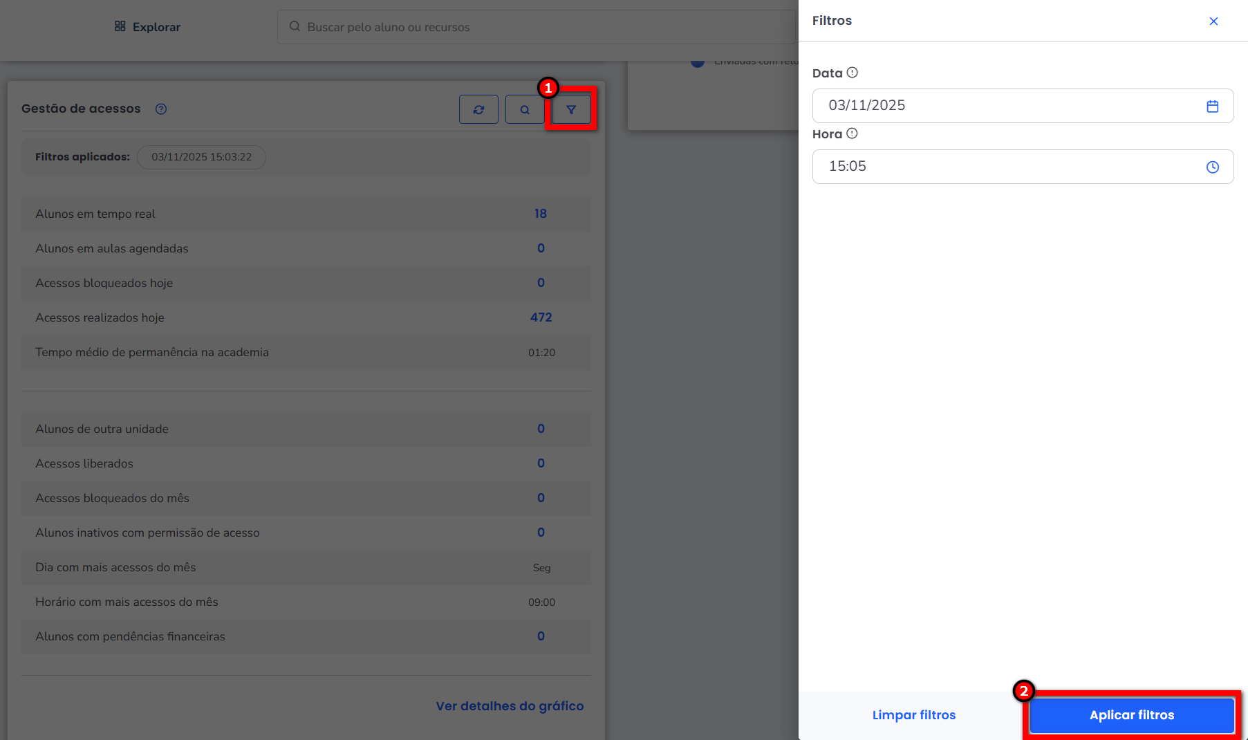 Para saber onde verificar o horário de maior acesso na academia, clique aqui.