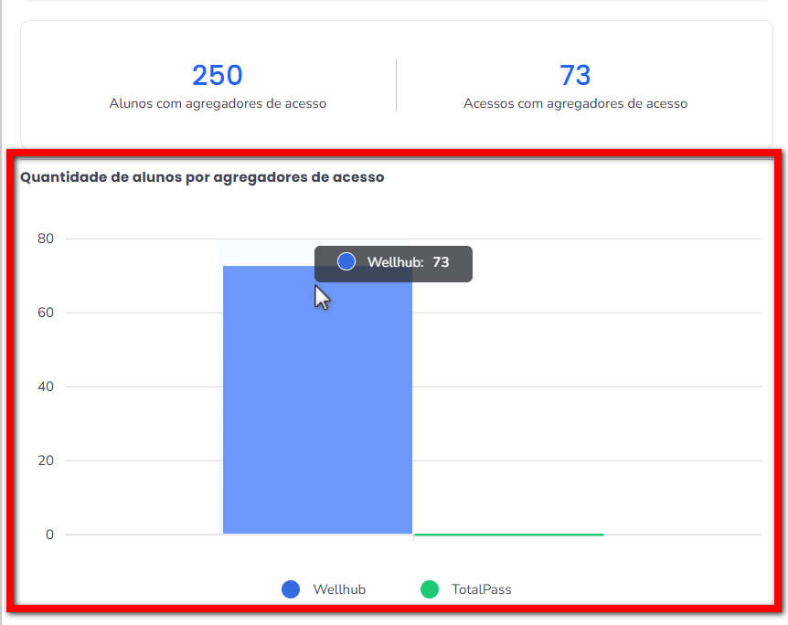 3. Na primeira parte do BI é apresentado o total de alunos Wellhub e o total de acessos desses alunos no período de busca;