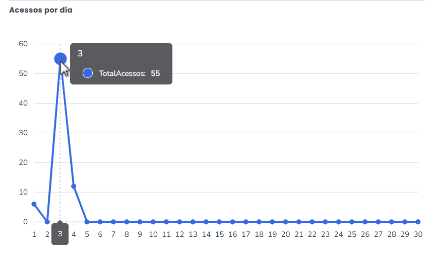 Observação: ao passar o mouse por cima de um dia especifico no gráfico, o sistema apresenta o total de acesso desse dia.