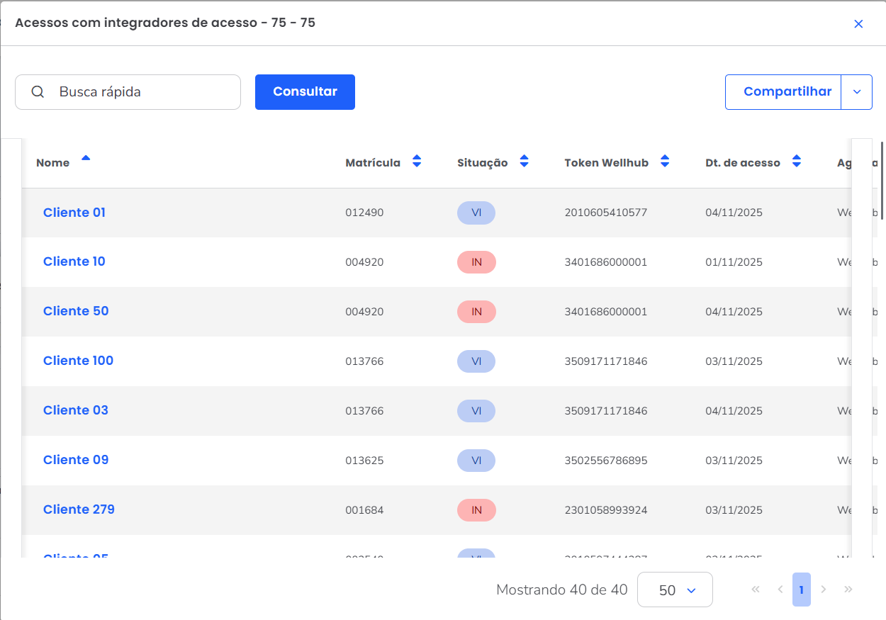 Observação: para ser identificado como Wellhub, o cliente precisa ter o token cadastrado em seu perfil e não ter planos ativos. Se for lançado um contrato para o aluno Wellhub, o token é removido automaticamente tornando-o aluno da empresa, não sendo contabilizado posteriormente no BI Wellhub, porém os acessos anteriores não serão eliminados do sistema, permitindo ao gestor consultar e visualizar as informações de períodos passados.