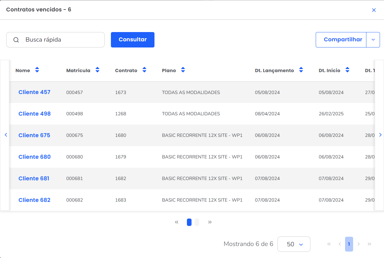 - Clientes do contrato com agregadores vinculados: apresenta todos os clientes com acesso de agregadores (Gogood, TotalPass e Wellhub);