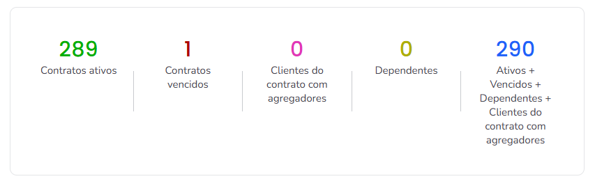 - Ativos + Vencidos + Dependentes: este é um totalizador dos contratos ativos, vencidos e dependentes no mês anterior.