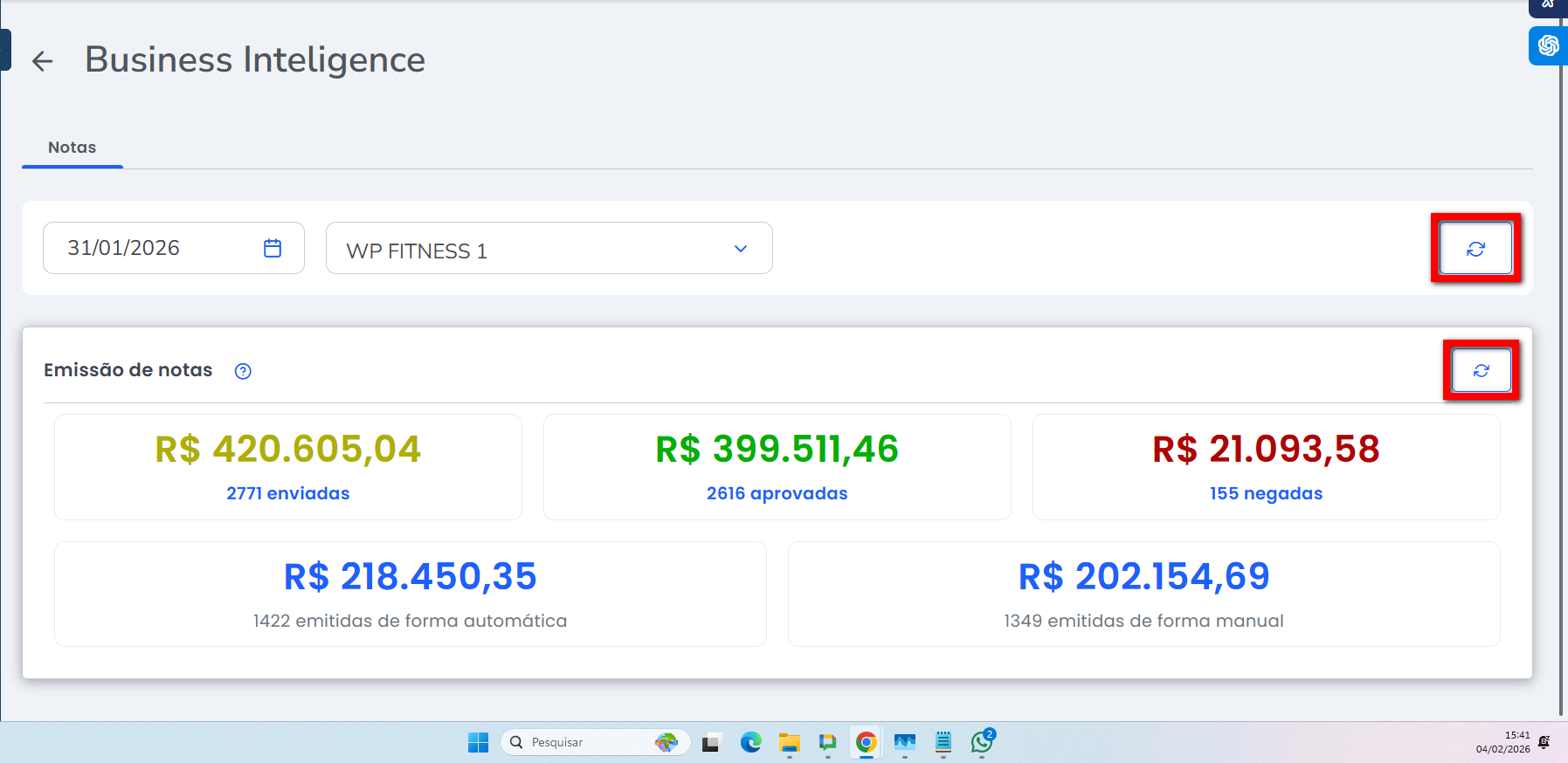1. No menu lateral esquerdo do módulo de notas fiscais, clique em “BI Notas Fiscais”;