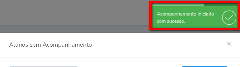 4. Ao clicar no ícone de calendário para iniciar o acompanhamento, o sistema contabiliza aquele aluno como acompanhamento iniciado;