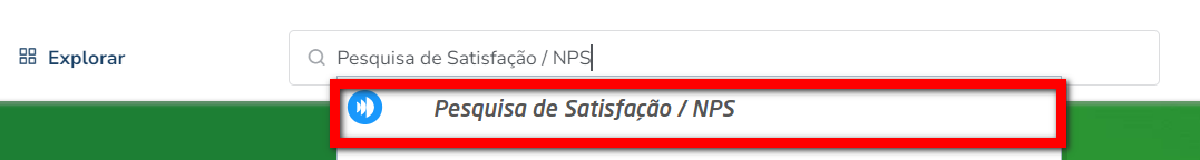 1. Acesse o módulo ADM e na lupa de busca pesquise por “Pesquisa de Satisfação / NPS“;