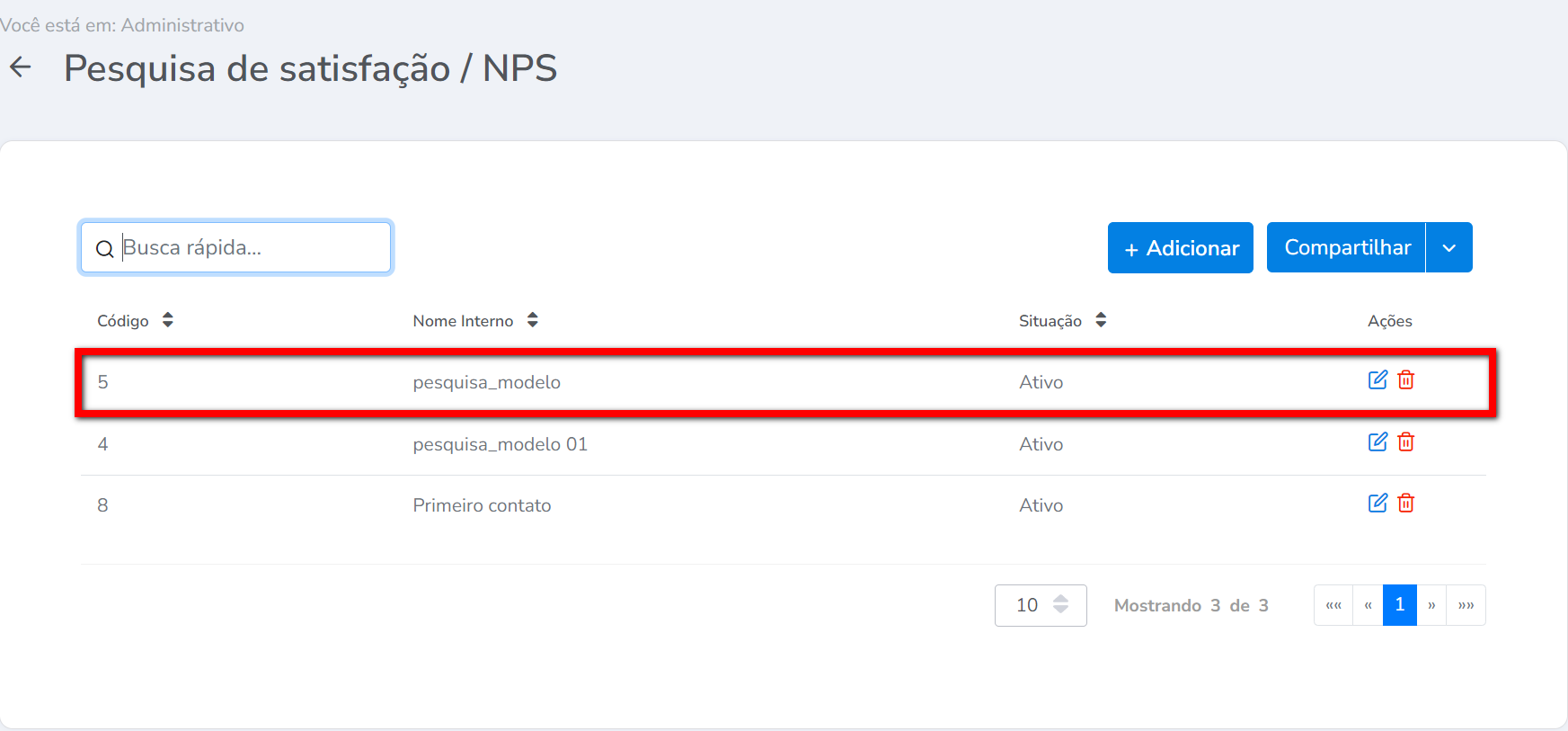 Para saber como cadastrar Pesquisa de Satisfação/NPS, clique aqui.