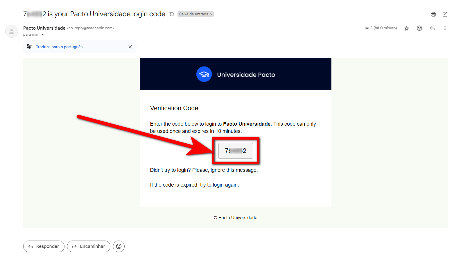 4. Digite o código que copiou no seu e-mail e clique em “Verify“.