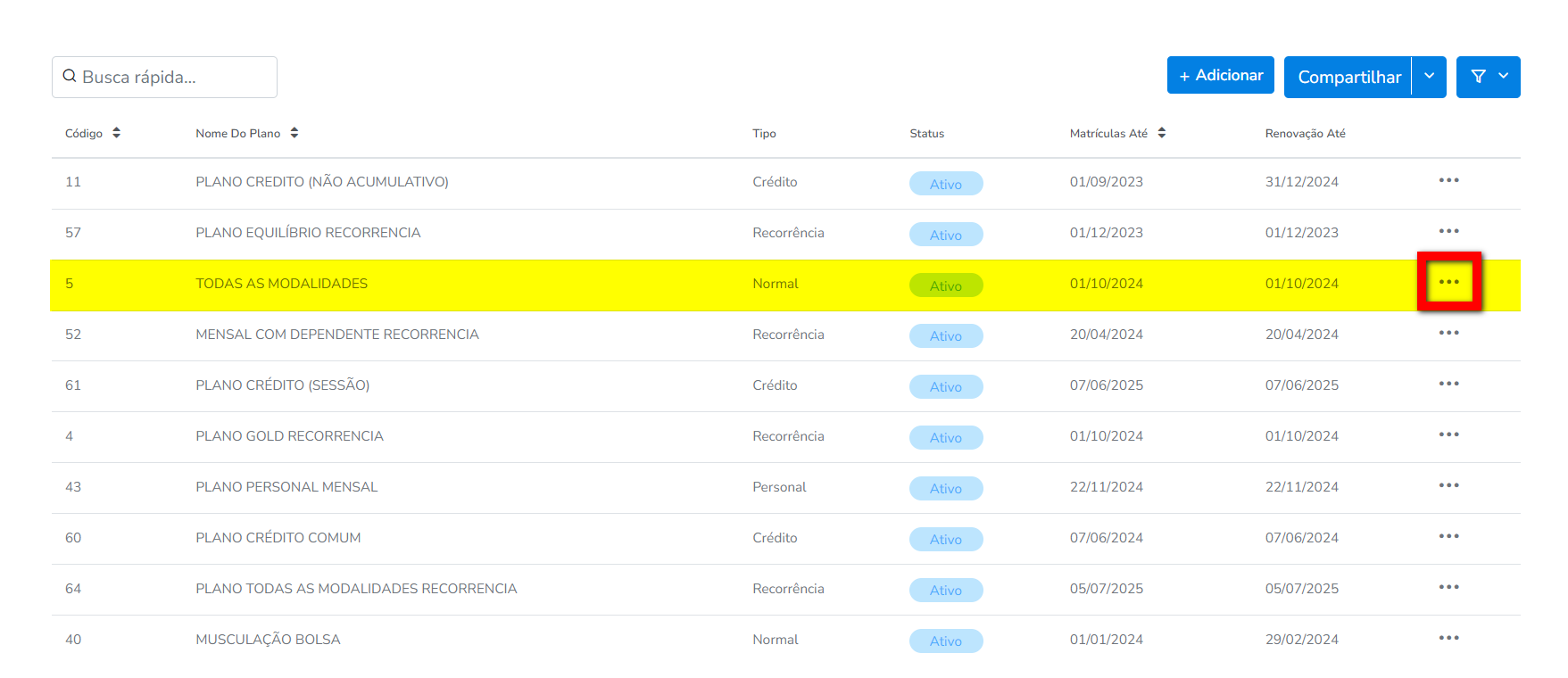 2. Nesta nova tela, será apresentado todos os planos cadastrados. Escolha o plano no qual deseja alterar;