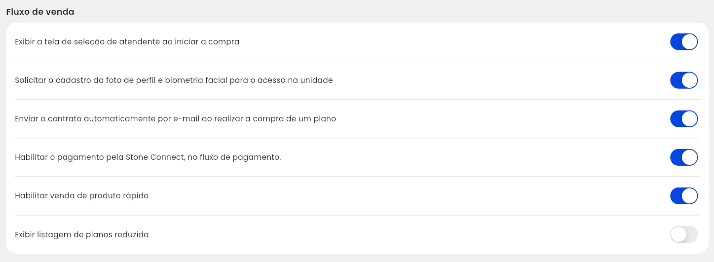 2.4. Em “Fluxo de venda” habilite/desabite as configurações conforme necessário;