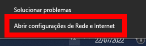 2. Após clique em “Abrir configurações de Rede e internet”;
