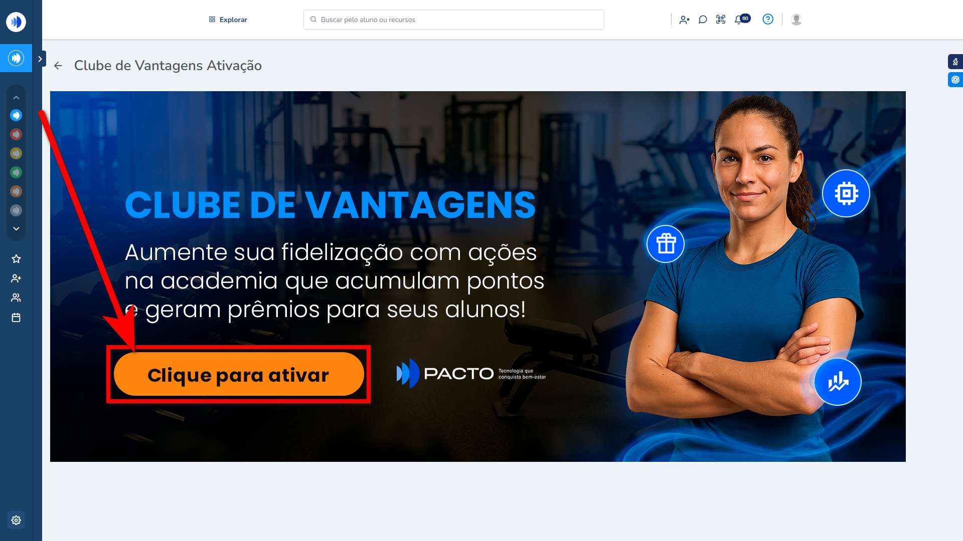 Um módulo que te permite criar várias estratégias de fidelização de clientes nas academias. A lógica dessa estratégia consiste em oferecer produtos, serviços e descontos em troca de pontos que os clientes acumulam ao fazer determinadas ações junto ao seu estabelecimento.