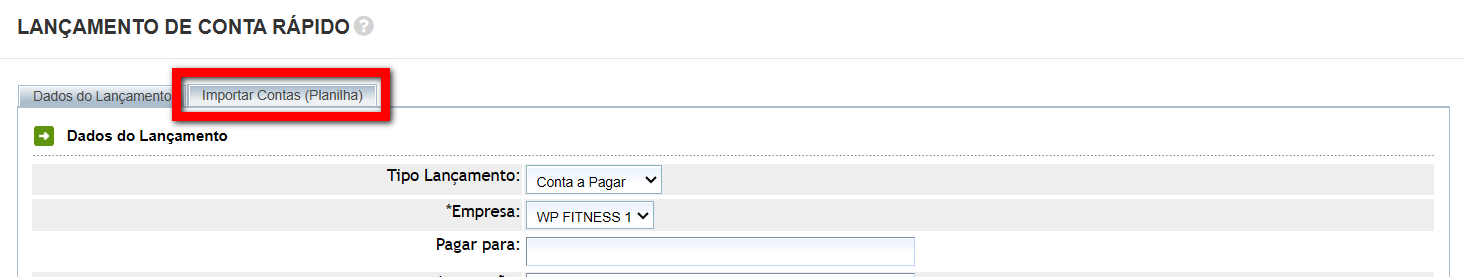 Para saber como realizar o lançamento rápido de contas, clique aqui.