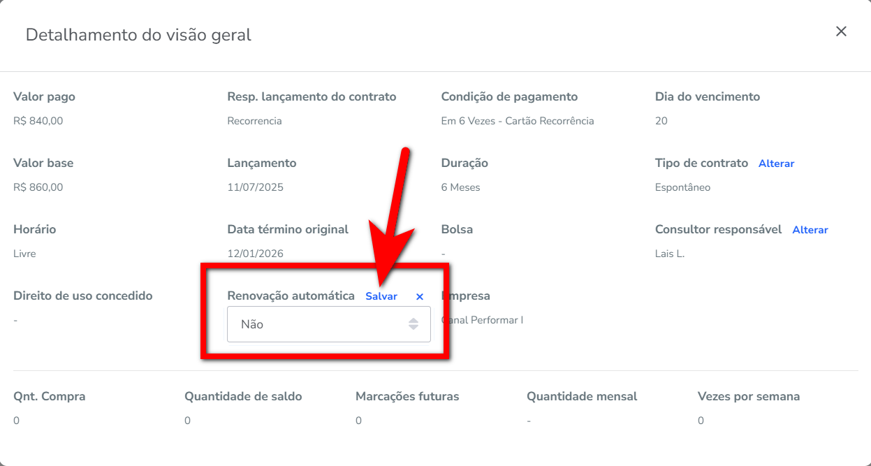 5. Pronto! Agora o plano do aluno não será renovado automaticamente.