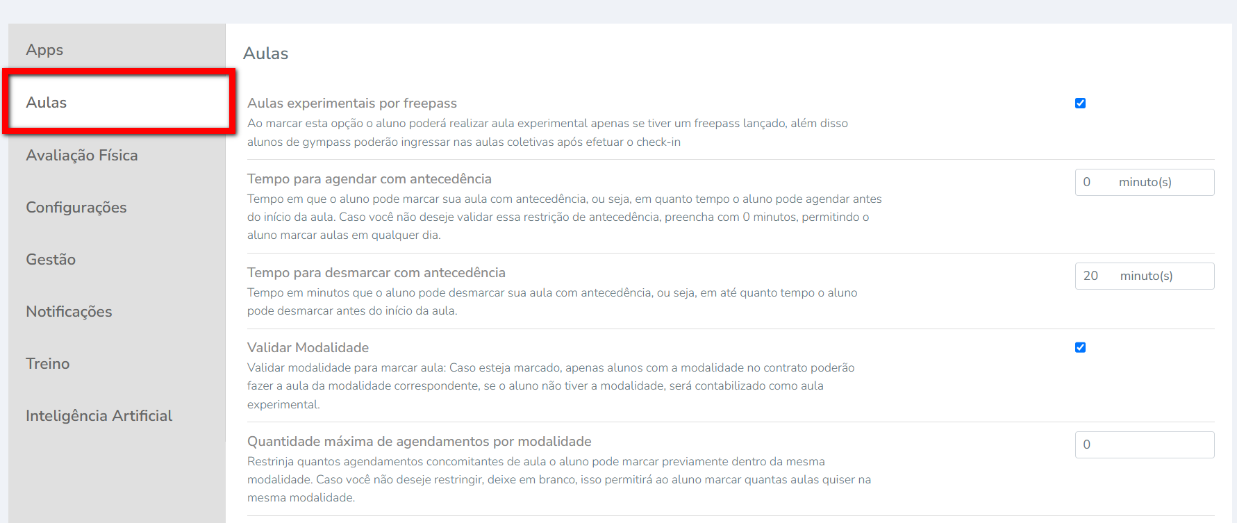 Para saber sobre as configurações da guia Avaliação Física, clique aqui.