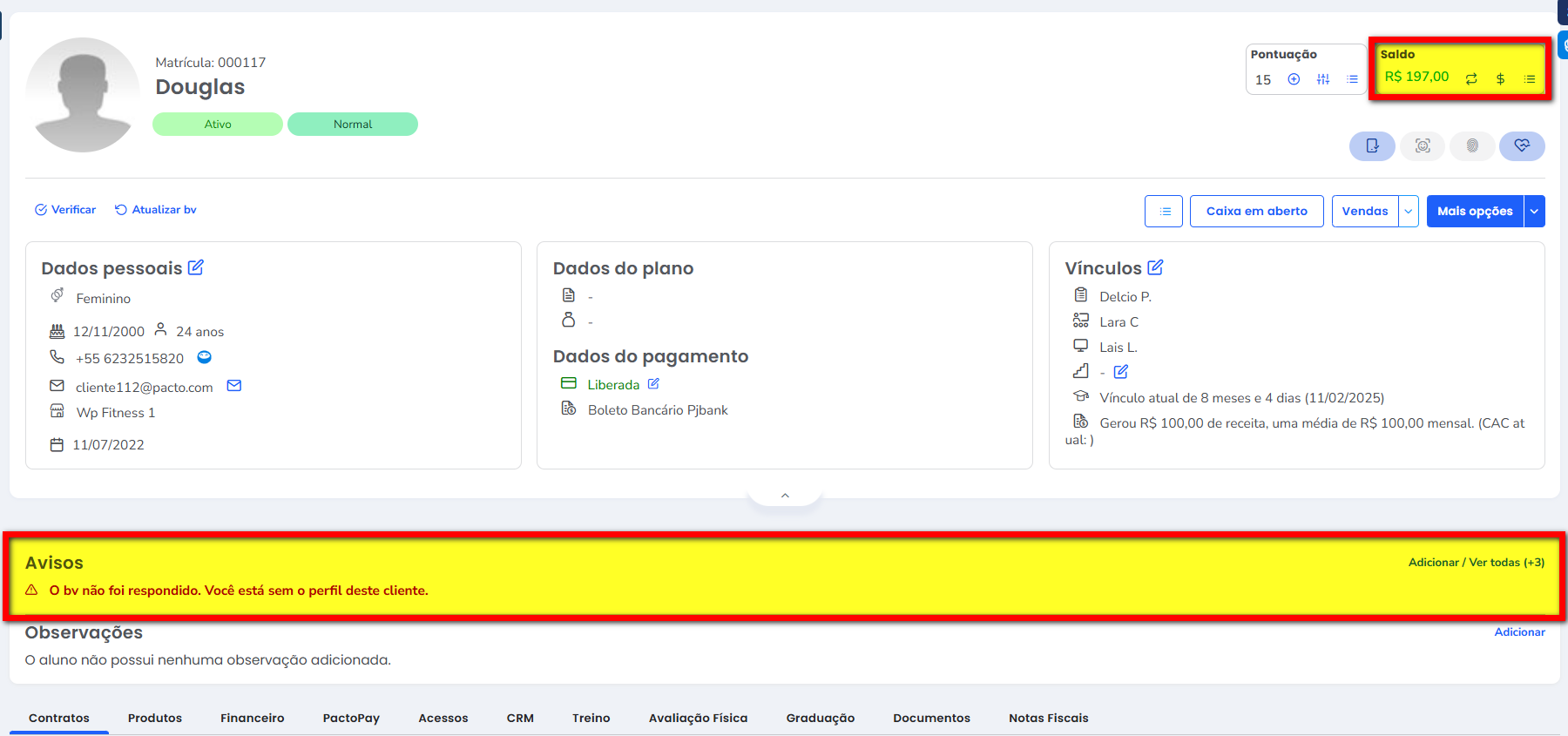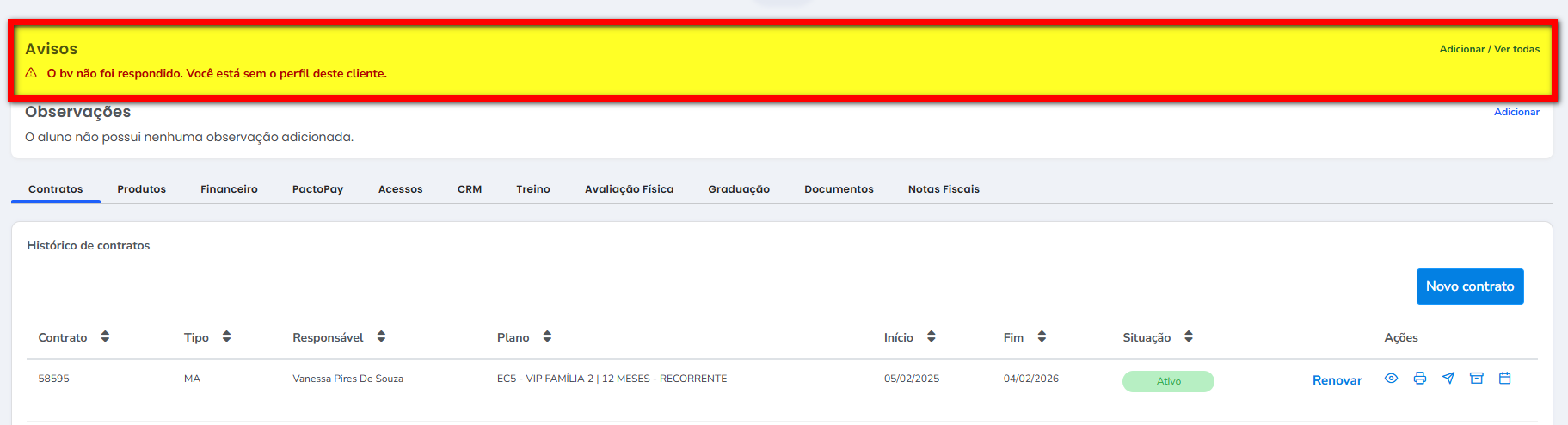 1.1. Primeiro, cria automaticamente uma mensagem de bloqueio na catraca, impedindo o acesso do aluno;