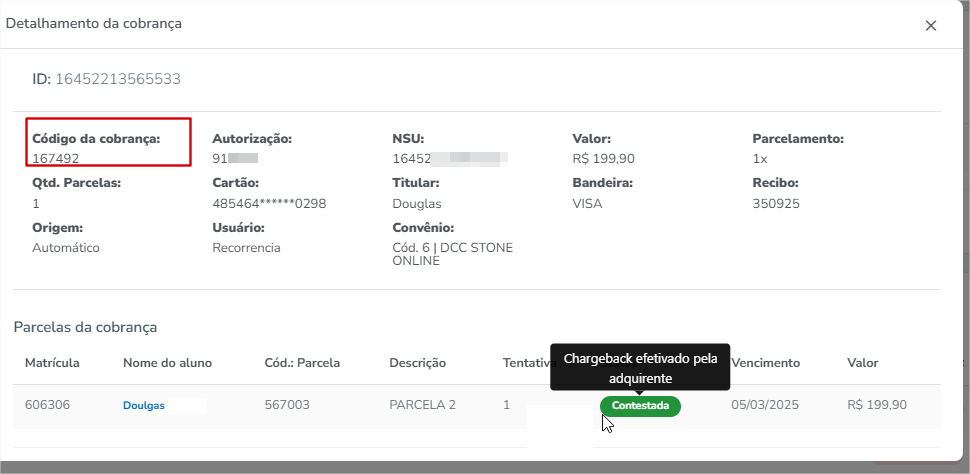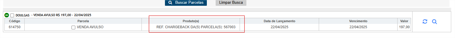 1.2. Em seguida, o sistema cria automaticamente uma nova parcela em aberto referente ao valor do chargeback.
