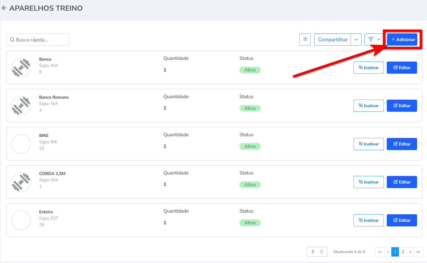 - Ativo: marque para ativa a utilização desse aparelho no cadastro das prescrições de treino;