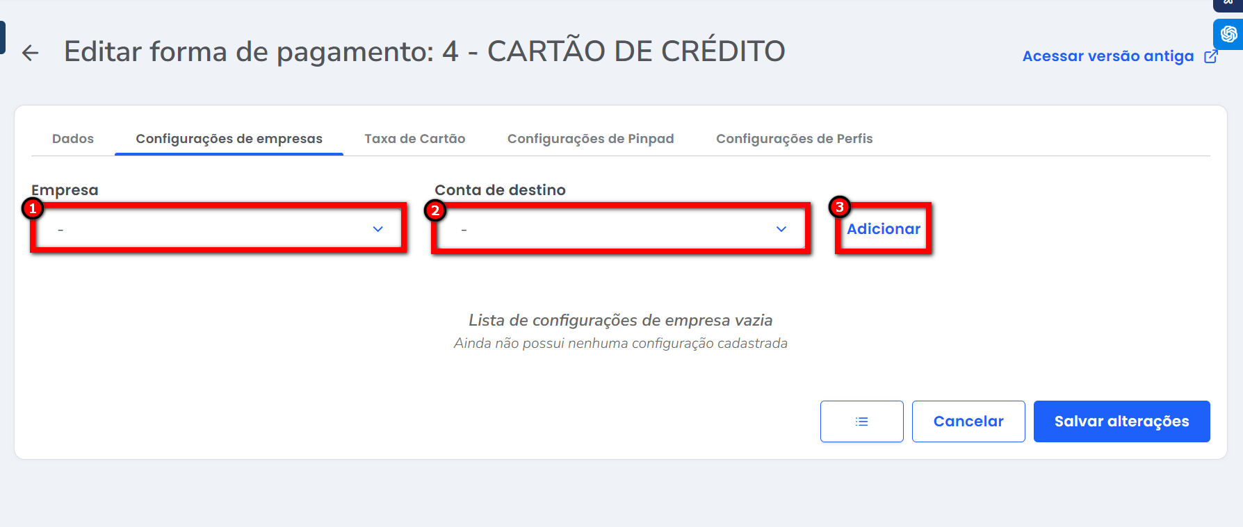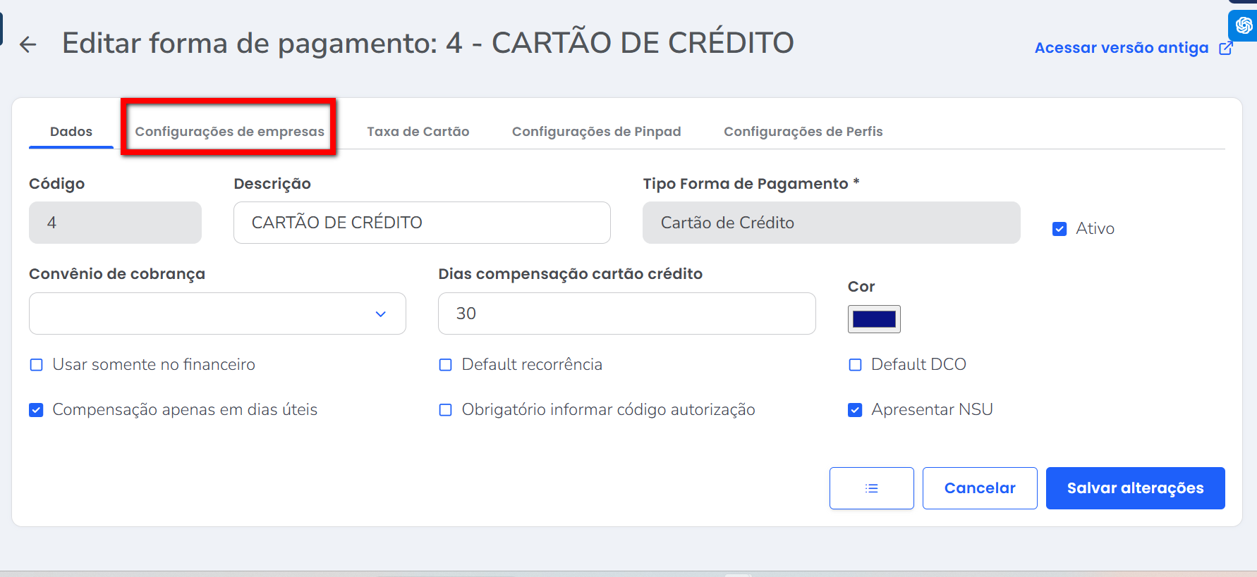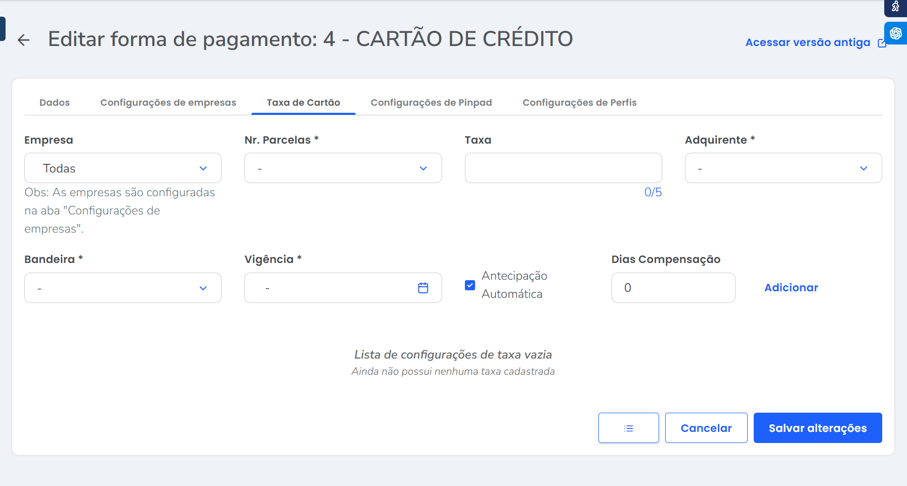 Para saber como cadastrar taxa para cartão de débito, clique aqui.