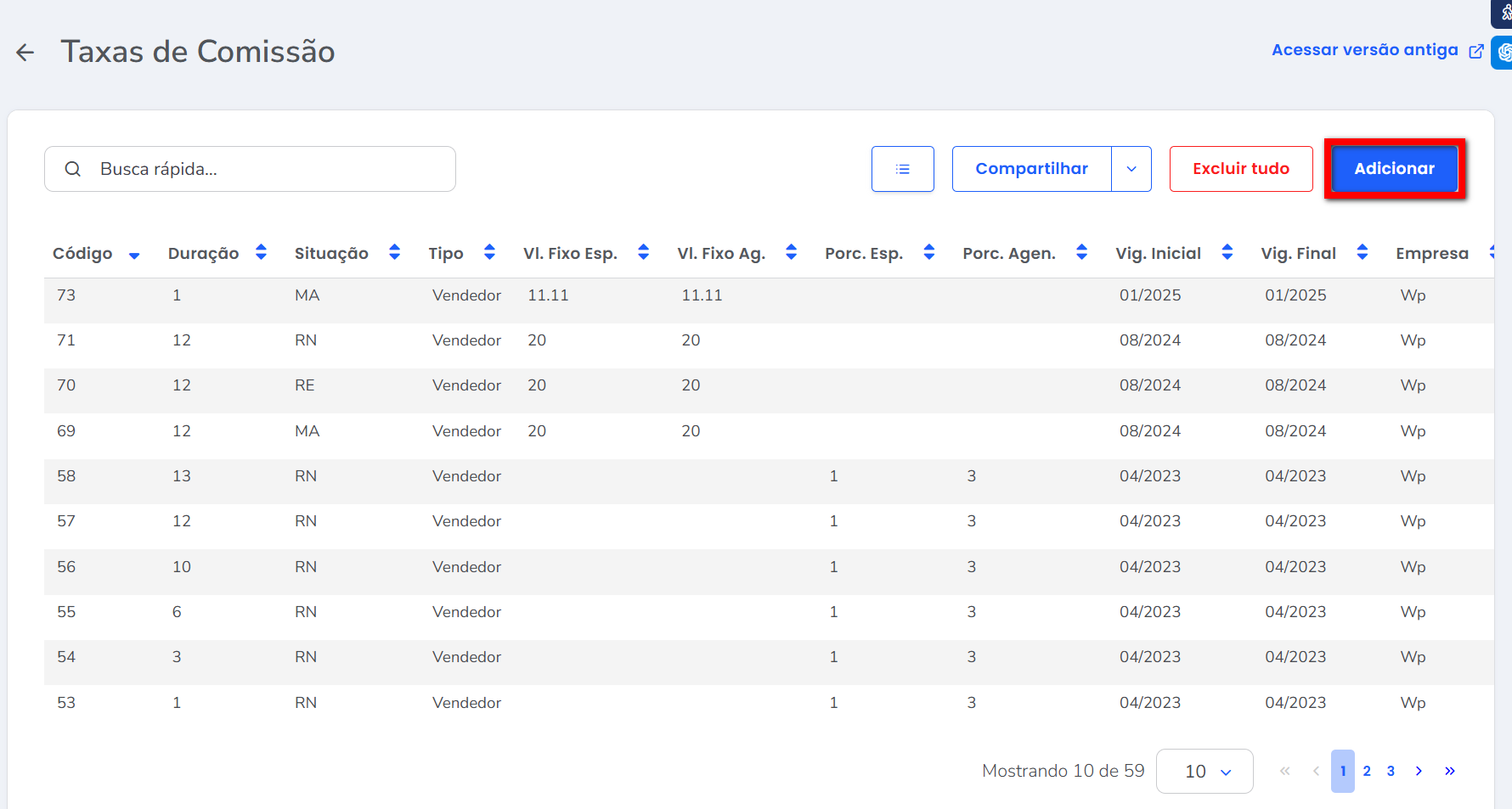 2. O sistema abrirá uma nova tela, clique em “Adicionar“;