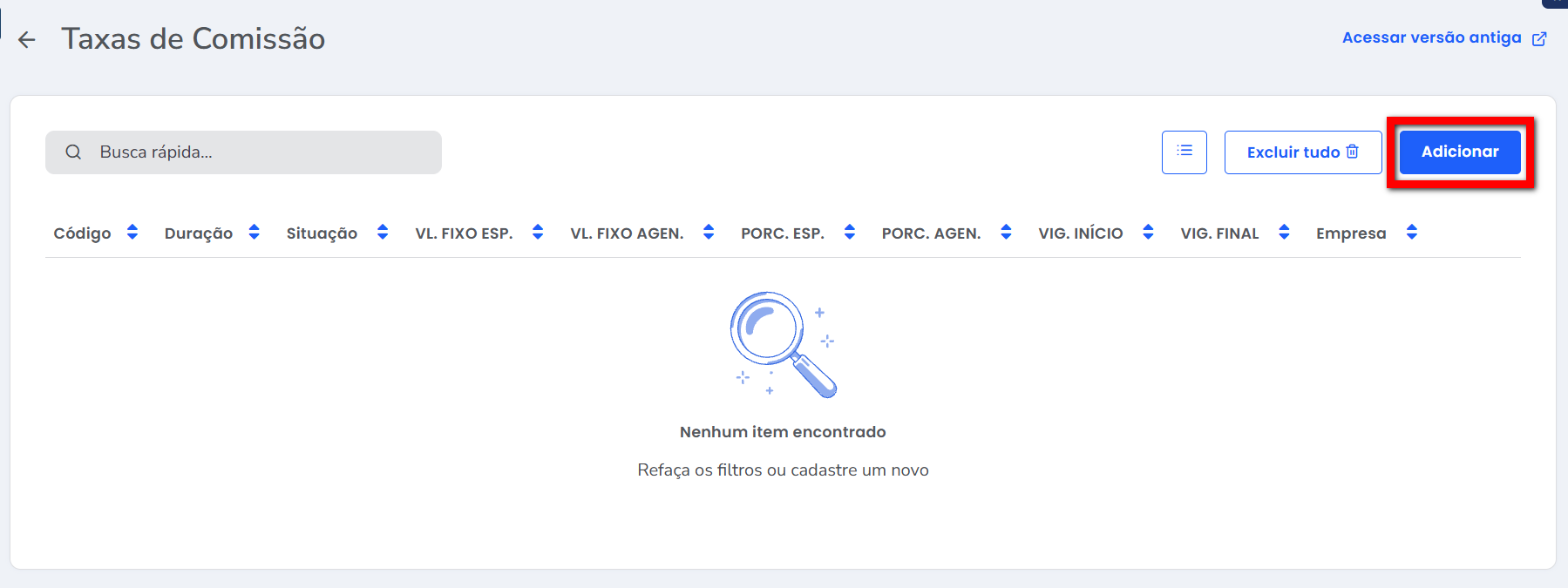 1. Na lupa de busca inteligente pesquise por “Taxas de Comissão“;