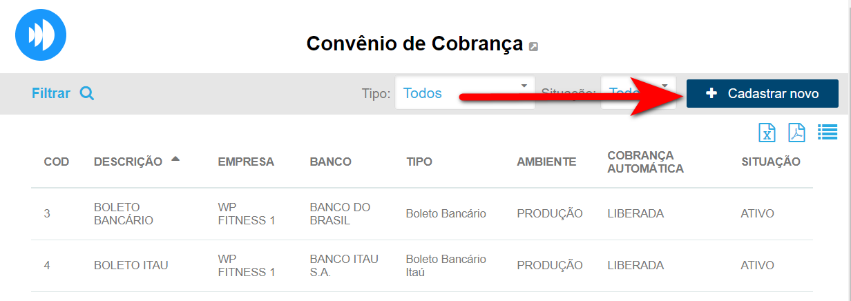 2. O sistema listará todos os convênios cadastrados. Crie um novo convênio, clicando em “Cadastrar novo“;