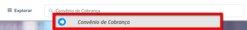 1. Na lupa de busca, pesquise por “Convênio de Cobrança“;