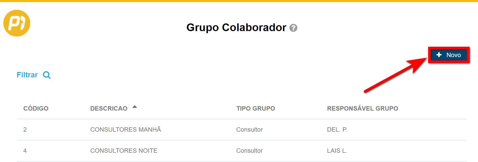 2. Após, clique em “Grupo Colaborador“;