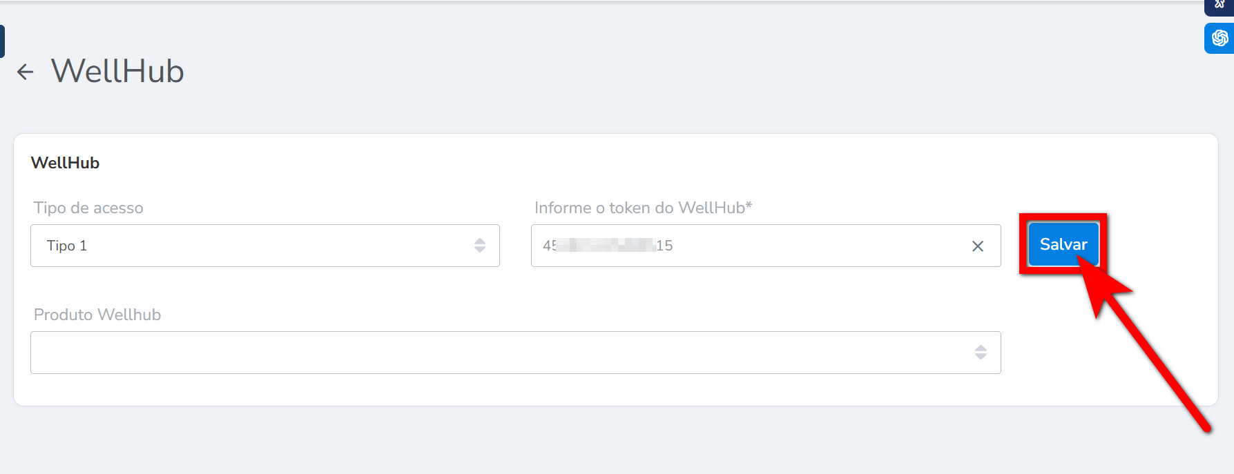 • Informe o token do Wellhub: preencha este campo com o token do aluno na plataforma Gympass para autorizar o primeiro acesso.