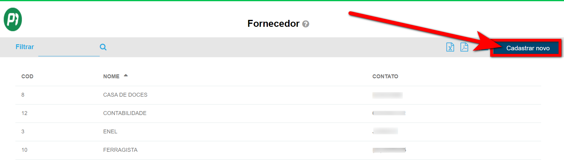 • Nome: preencha com o nome do fornecedor;