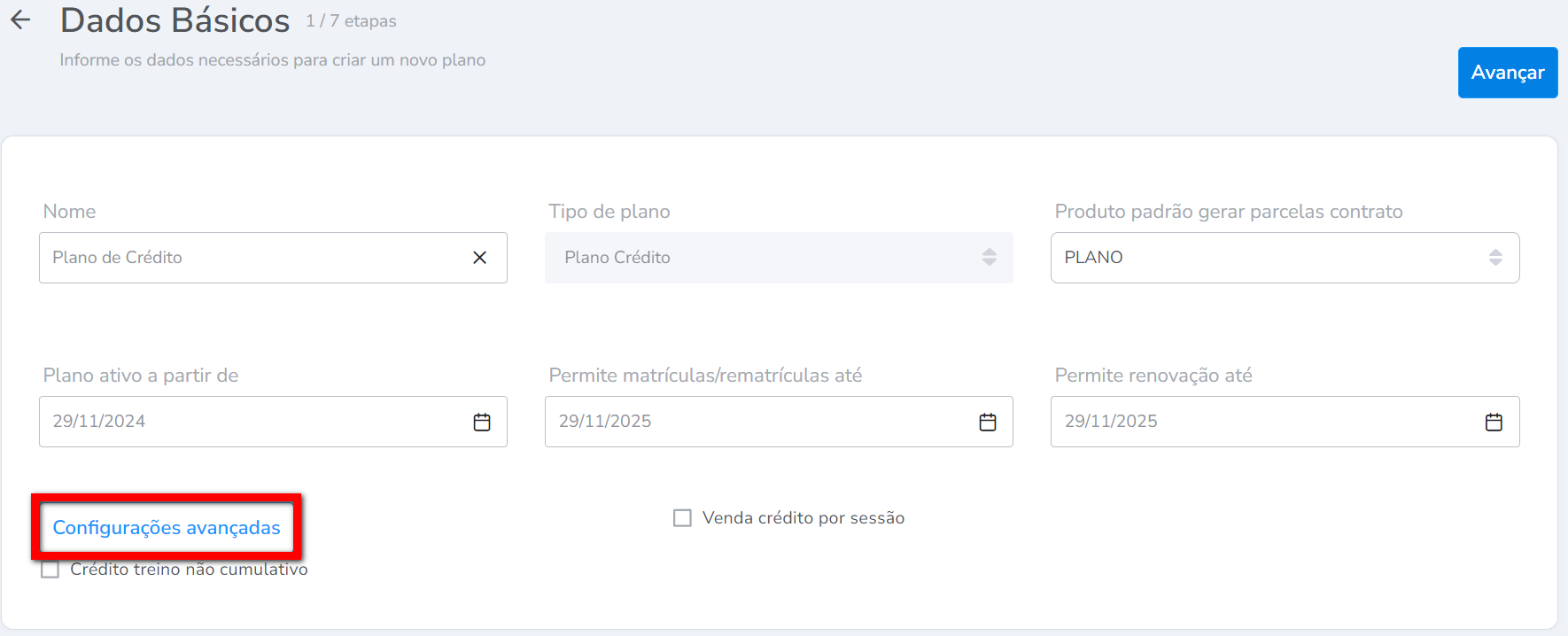 Para saber como cadastrar plano de crédito (por sessão), clique aqui.