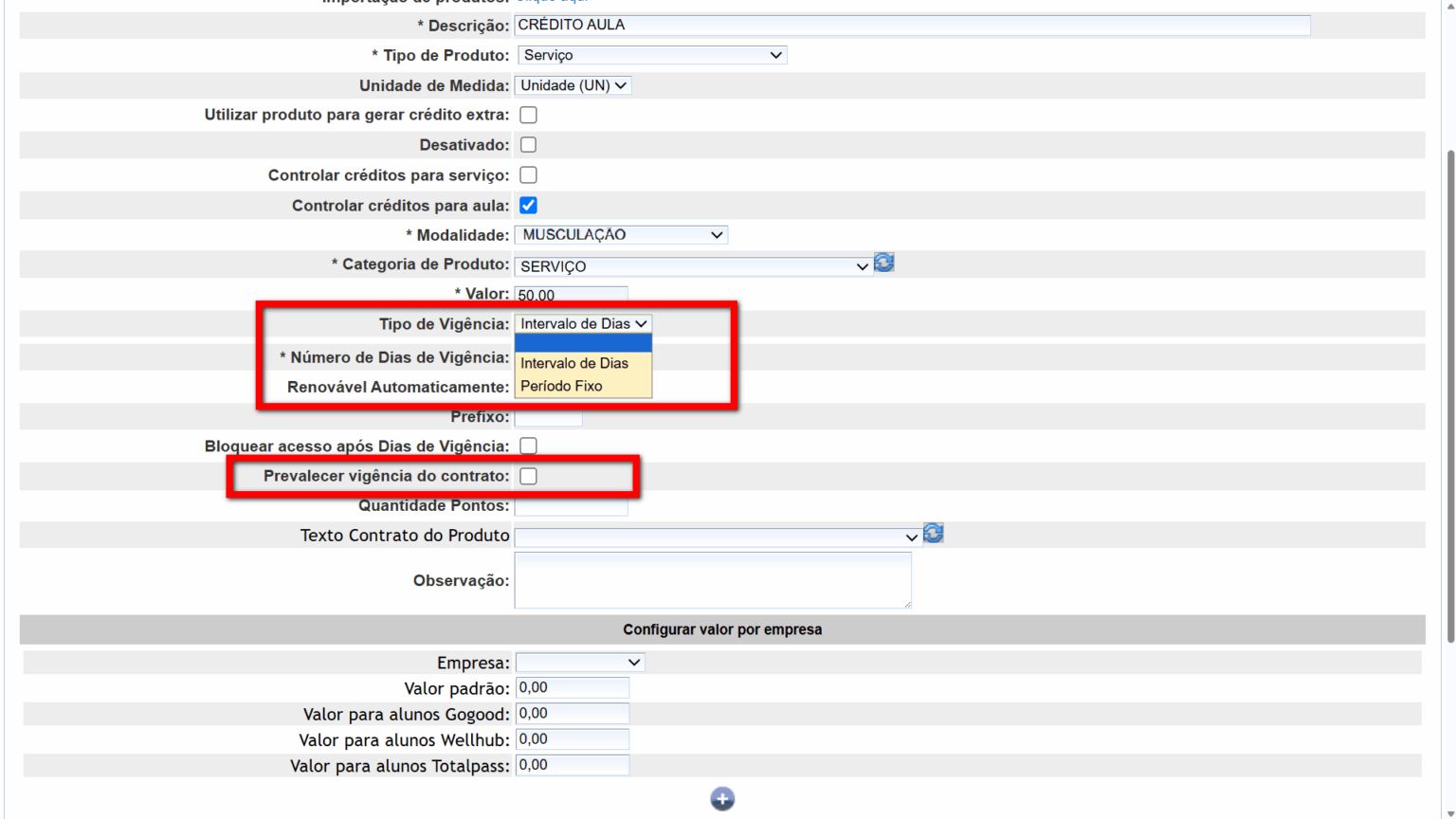 - Valor para alunos Totalpass: preço específico para alunos vinculados ao integrador Totalpass.