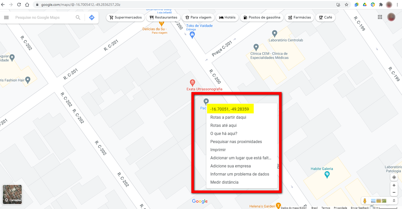 1. Localize a sua empresa no Google Maps e clique com o botão direito sobre a empresa;