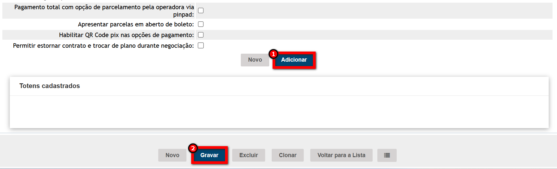 Atenção: no campo “Descrição do Totem”, é obrigatório configurar com o nome padrão TOTEMFLOW.