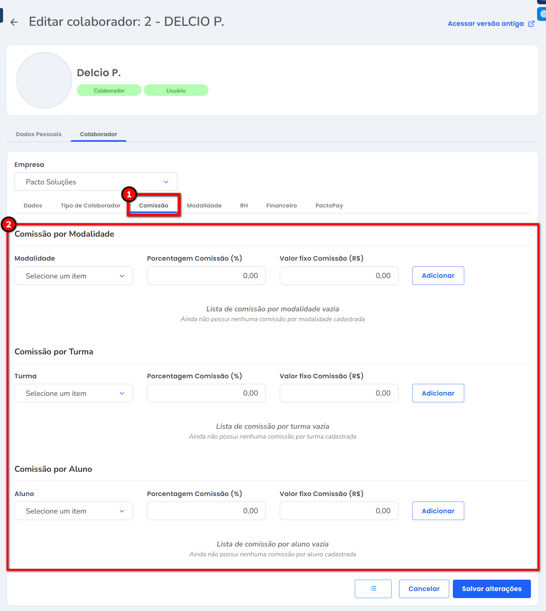 Algumas empresas pensando em elevar a motivação e o desempenho dos seus professores optam por implementar o pagamento de comissão. Pensando nisso, no sistema Pacto criamos a possibilidade de configurar a comissão para o professor por modalidade, turma e por alunos específicos, definindo um valor fixo ou uma porcentagem.