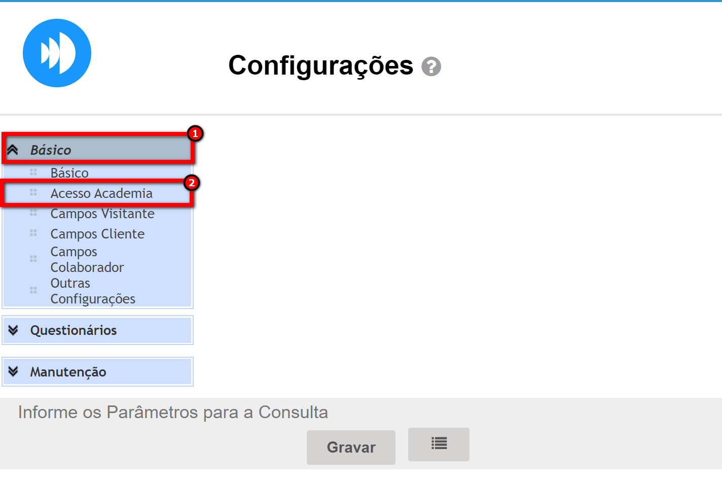 2. Ao acessar as configurações, clique na aba “Básico“, em seguida, clique em “Acesso Academia“;