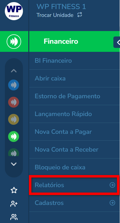 1. No menu lateral esquerdo do módulo Financeiro, clique em “Relatórios“;