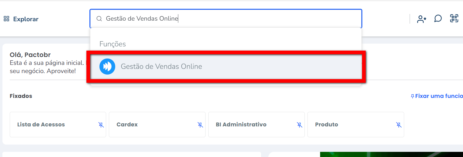 1. Na lupa de busca do sistema, pesquise por “Gestão de Vendas Online“;