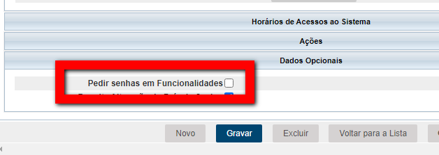 5. Deixe desmarcada a opção “Pedir senhas em Funcionalidades“;