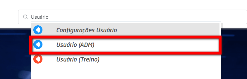 1. Na lupa de busca do sistema pesquise por “Usuário (ADM)“;