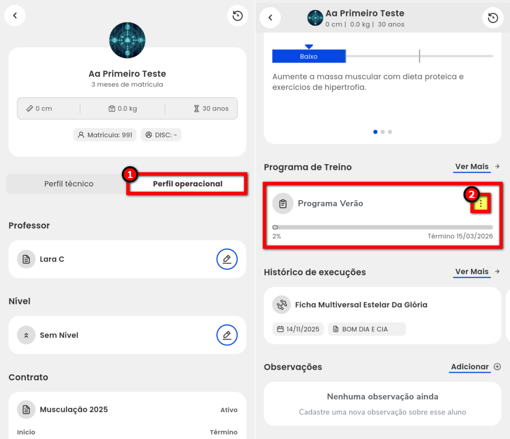 3. Na guia “Perfil operacional“, localize o bloco “Programa de Treino” e clique no ícone de edição apresentado no programa que deseja alterar ou editar;