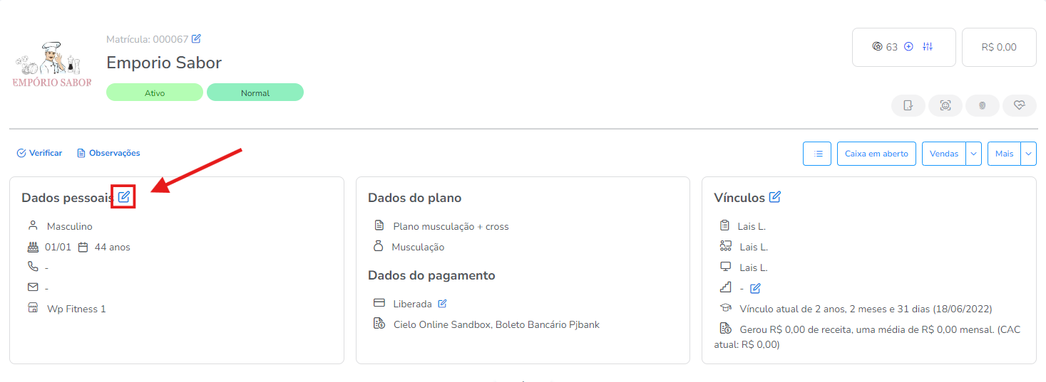 2. Clique no ícone de “Dados Pessoais” para alterar o “Tipo de Pessoa” de Física para Jurídica;