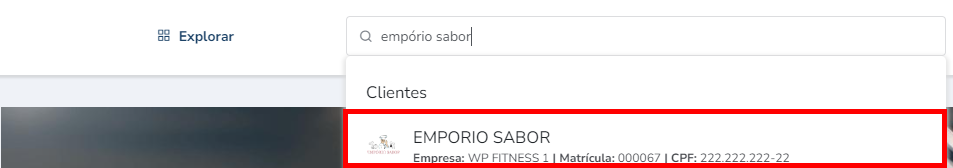 1. Na lupa de busca do sistema, pesquise pelo cliente;