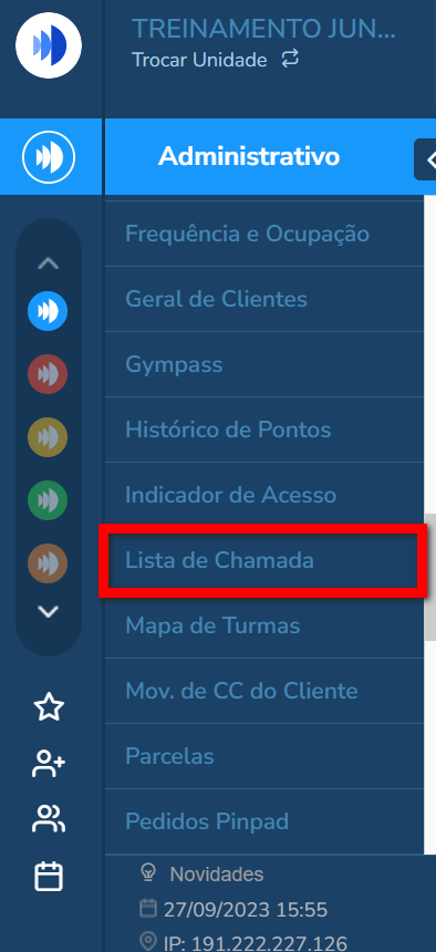 2. Em seguida, clique em “Lista de Chamada“;