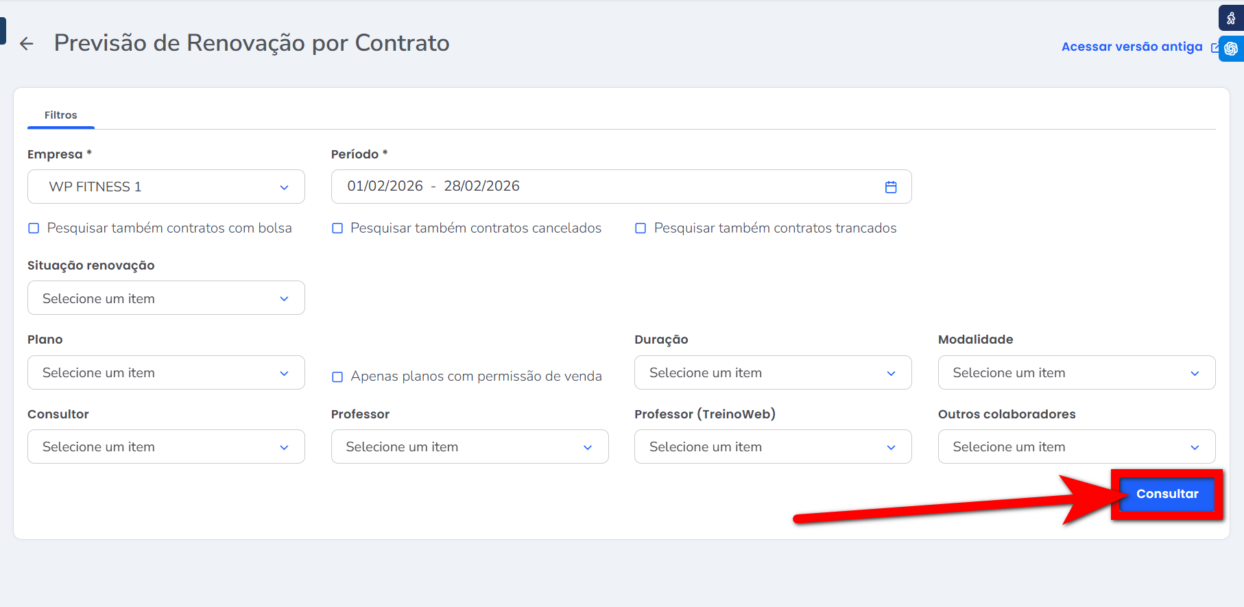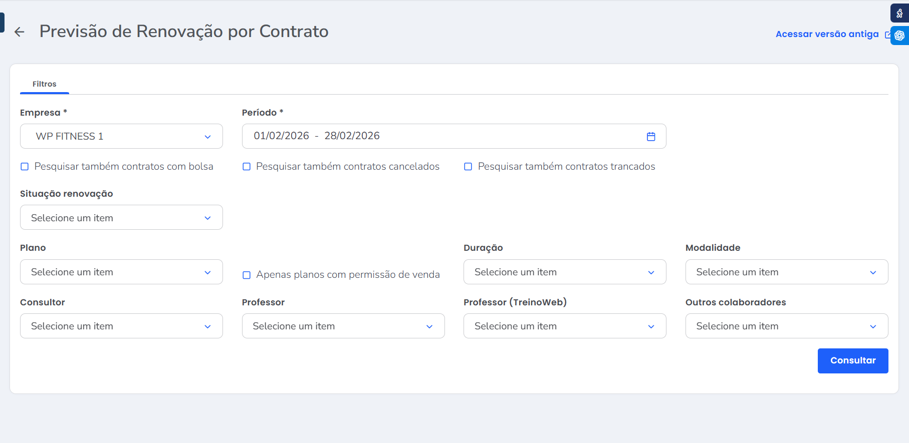 • Situação da renovação: selecione quais situações de renovação deseja visualizar;